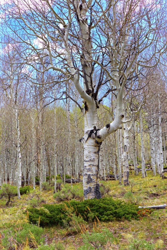 #8- Aspens- Hogan’s Pass, UT- May 2025. Stopping at the peak of Hogan’s Pass I decided to hike to the summit of the hill that was next to it. The altitude forced me to stop every 20 steps or so as I neared the summit, but the view was magnificent. I’m grateful that no bears decided to have me for lunch. I walked through of grove of these beautiful Aspen trees near the base of the trail. My understanding is that Aspens are not individual trees but exist as a colony of trees. This particular tree is connected to all of the trees behind it. Additionally, they are some of the oldest trees in the country.
