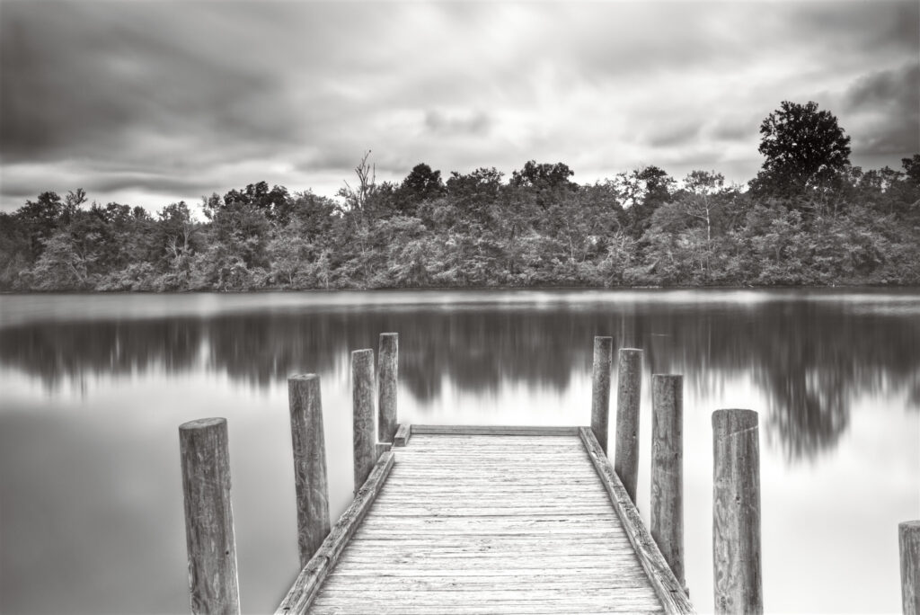 #3- Mountain Run Lake, Culpeper, VA. July 2025. I’ve always tended to take photographs on sunny days, because I love the look of a deep blue sky but on this cloudy day, I decided to visit a lake near my home. The dark clouds muted the colors and lent the scene to a Black and White image. I took this with a long exposure to create a smooth and mostly disturbance free appearance. If you look closely at the summit of the tallest branch you will see a bald eagle.